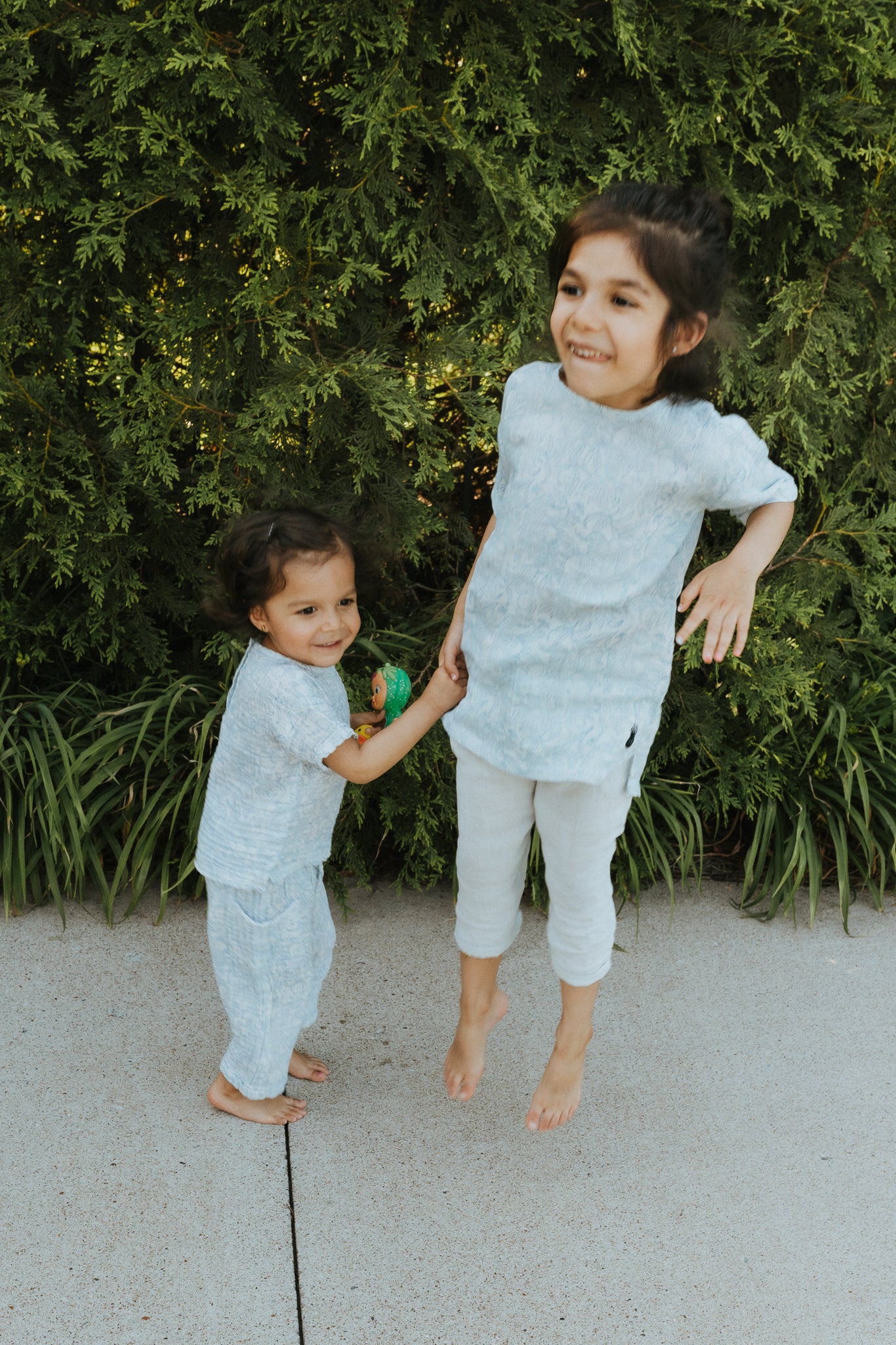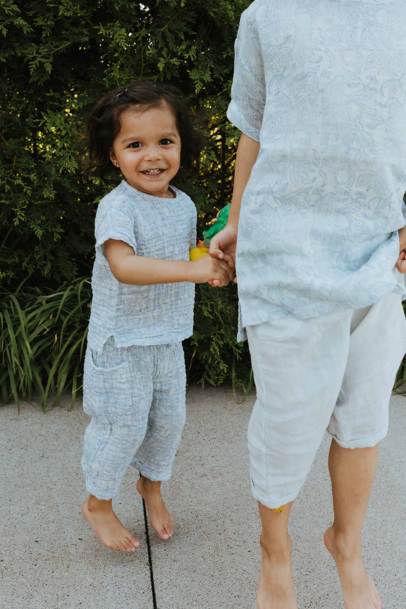 These pale blue block-printed pants are the ideal wardrobe staple, and can be mixed and matched with the Chachu top.