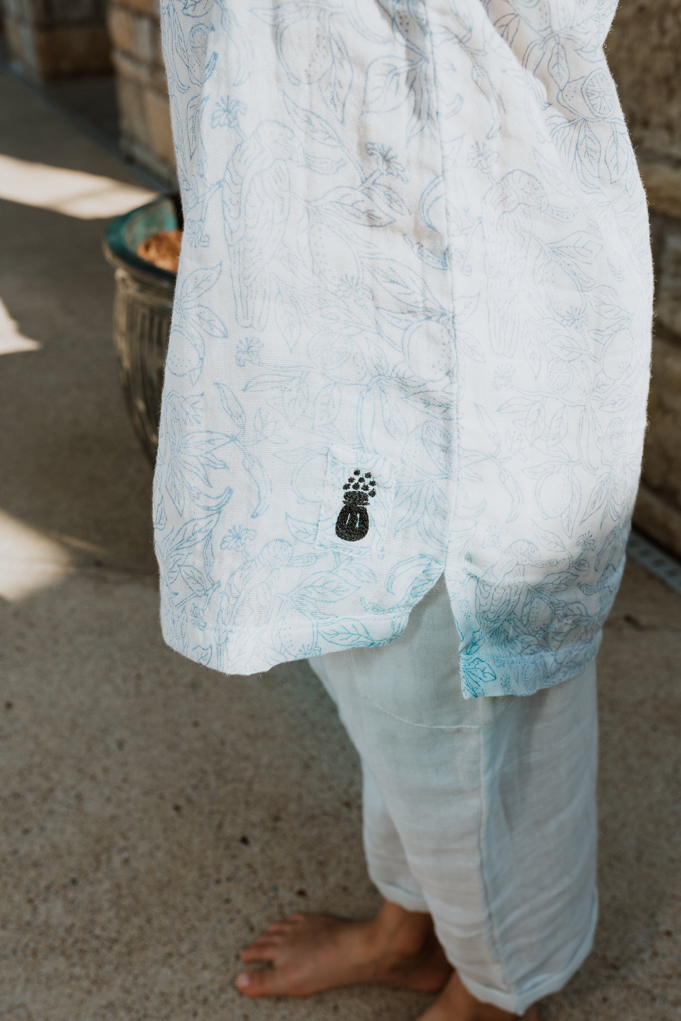 This pale blue block-printed top is the ideal wardrobe staple, and can be mixed and matched with the Bumsie bottoms.