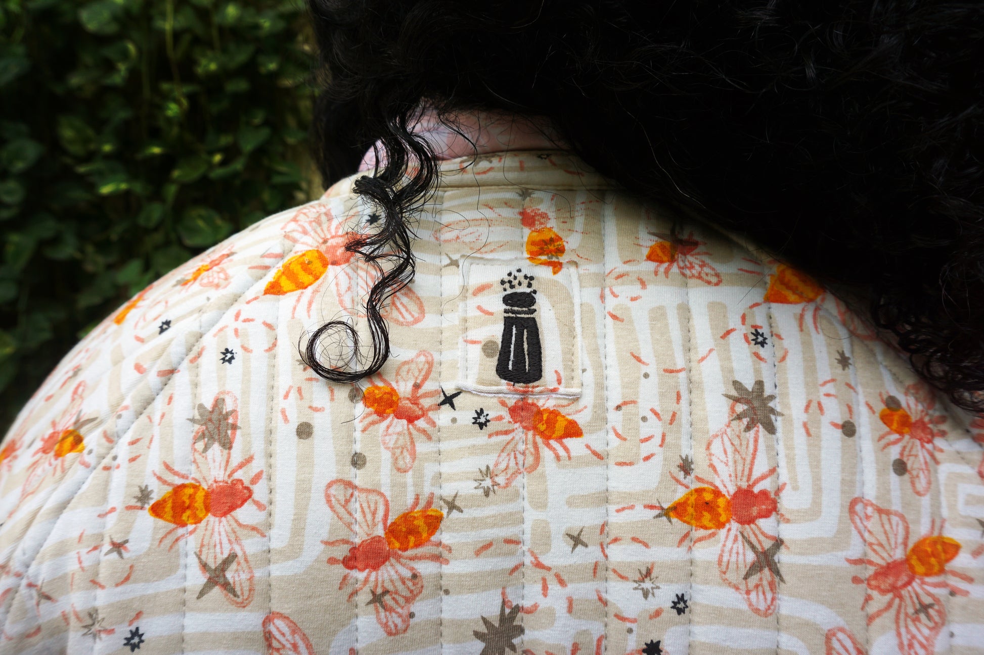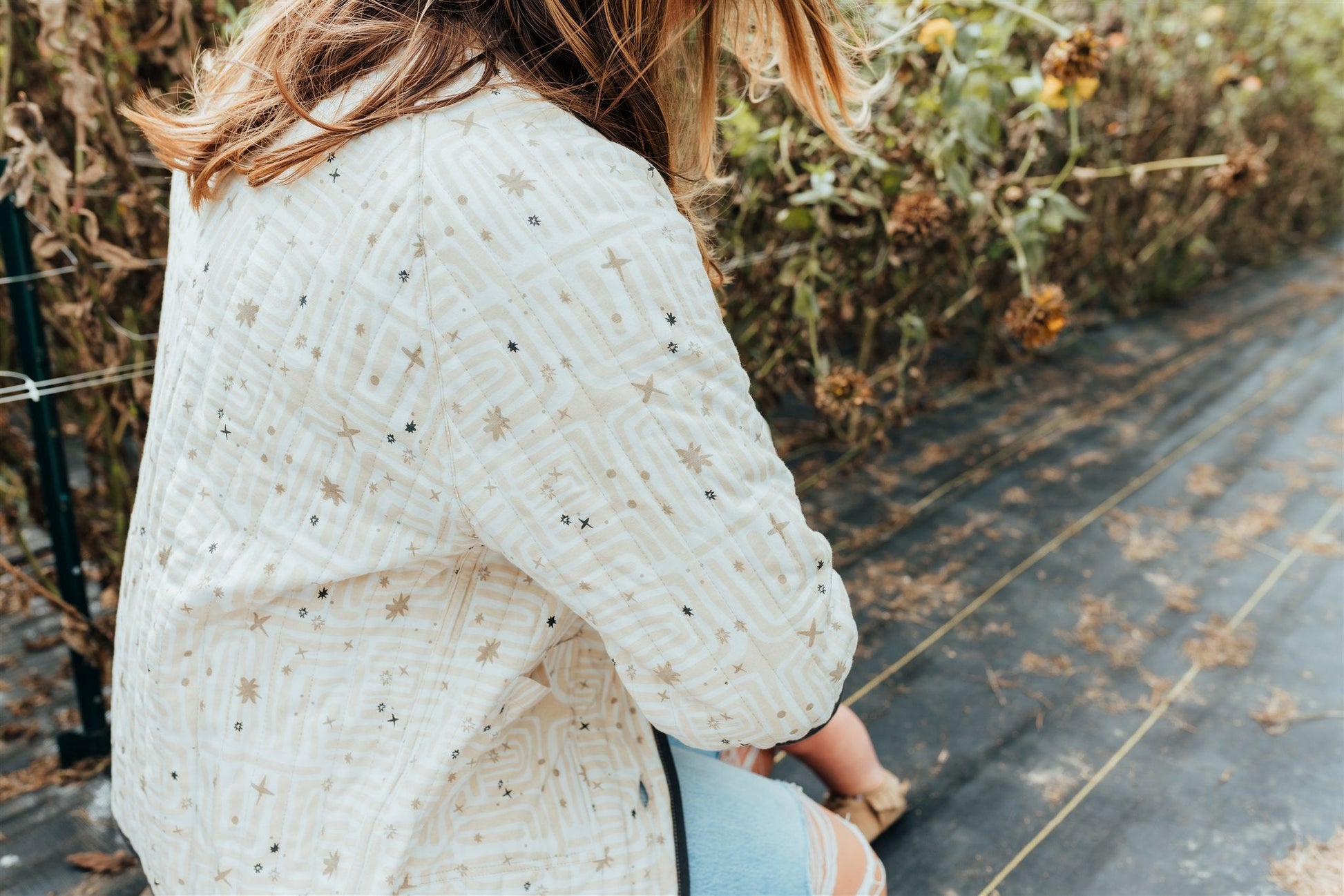 Hand block-printed on one side with our classic OG prints, A-Kela, Meant to Bee, or Peach for the Stars, with a goes-with-anything Charcoal Gray on the other side. You're getting 2 jackets in 1 — who doesn’t love that?!