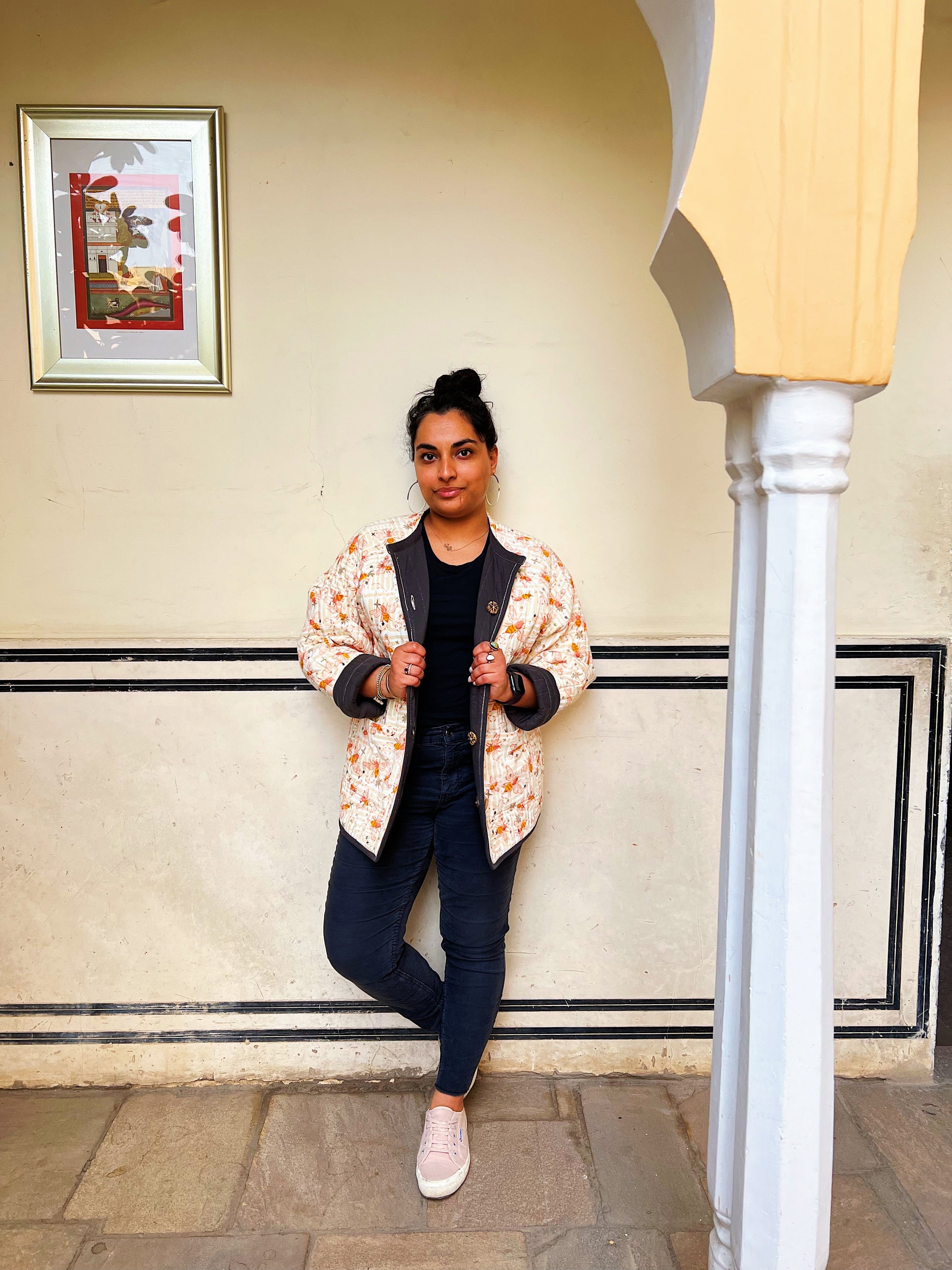 Please Note: The Nani has gender-neutral sizing, and is meant to be a bit on the larger side. If you'd prefer a more snug fit, we highly recommend you size down. Find The Nani's size chart here! Jazmin wears the Nani in Meant to Bee, and A Kela in a Medium. Nandhini wears the Nani in Peach for the Stars in a Small.